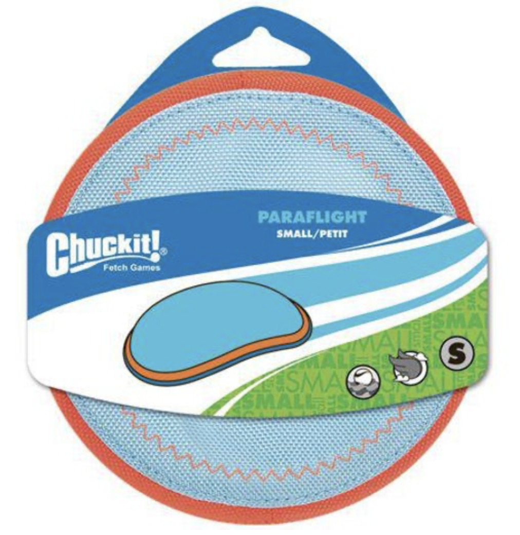 The Chuckit! Paraflight Flyer is perfect for games of fetch, whether you're out in the yard or the water! It features a soft rubber edge that's gentle on your dog's gums and teeth, but a strong multilayer nylon interior makes it durable for playtime.