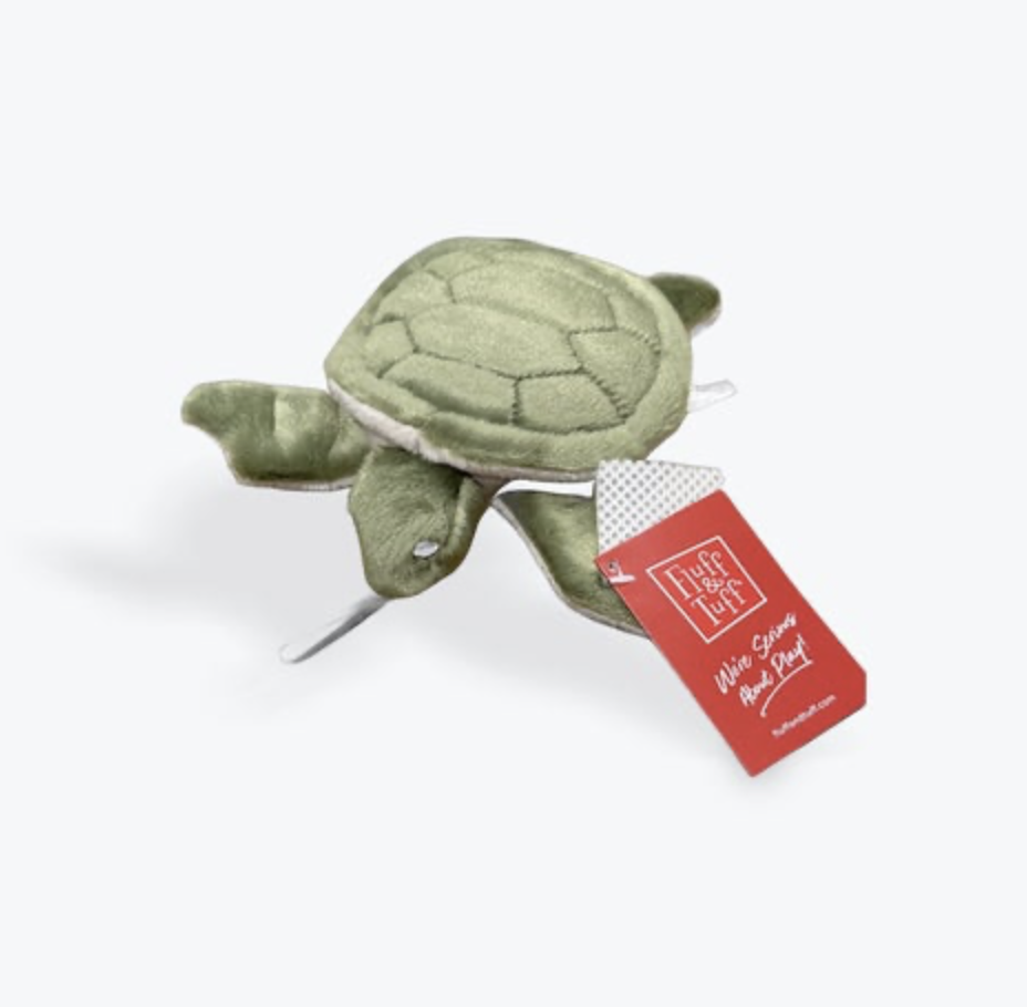 Your dog will warm up to Esmeralda quickly. No hard exteriors here - Esmeralda’s shell is soft, plush and ready for snuggling. When she’s not a cuddle buddy, her round shape and floppy legs make her great for a game of toss or fetch.